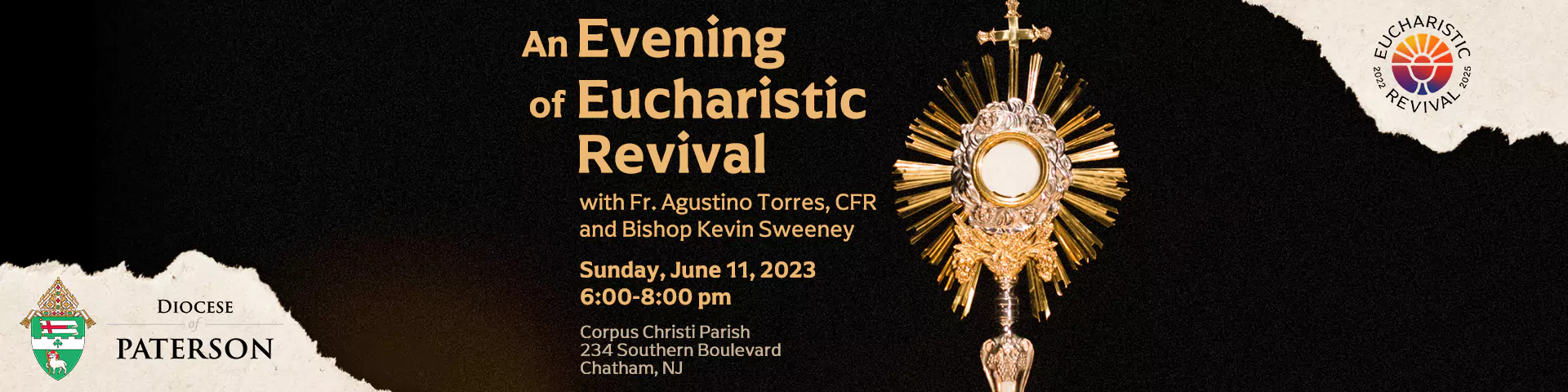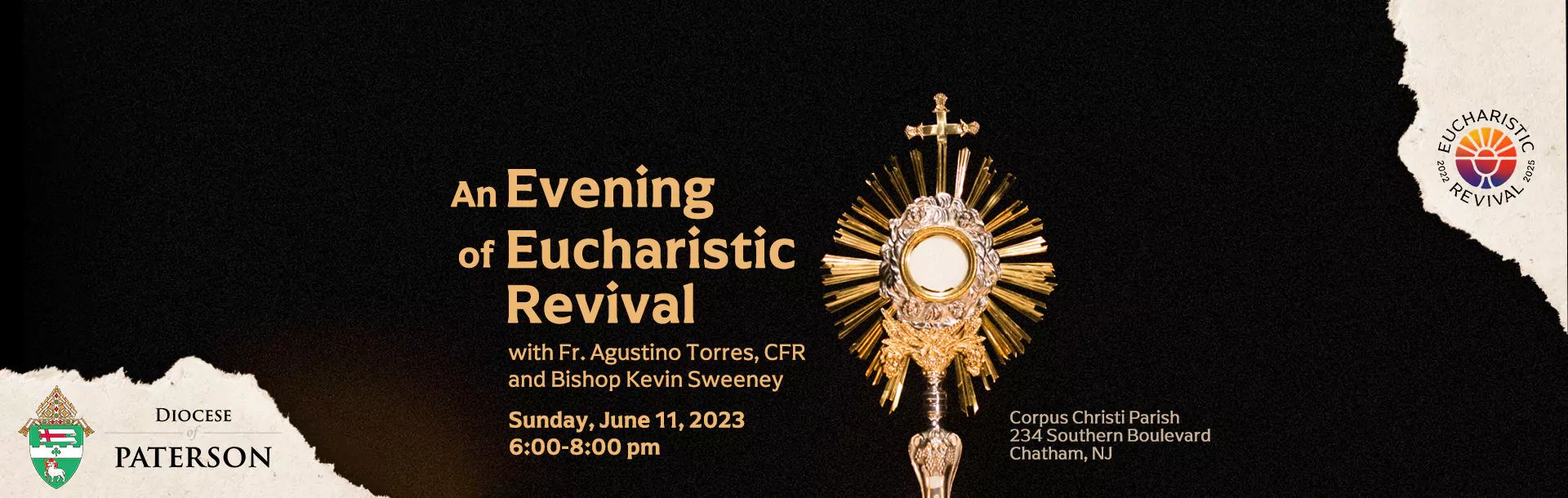 Bishop Sweeney invites you and your parish to participate in An Evening of Eucharistic Revival on Sunday, June 11, from 6:00 to 8:00pm, at Corpus Christi Parish in Chatham. Bishop Kevin Sweeney and Fr. Augustino Torres, CFR, will lead the evening of Adoration, Praise and Worship, and Benediction to enhance our understanding of, love for, and living out of, the Holy Eucharist.