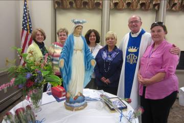 The meeting opened with an audio-visual presentation of the Luminous Mysteries and the pictures helped us to meditate on each bead of the Rosary. After praying the Rosary and Divine Mercy Chaplet, we listened to a recitation of Blessed Mother’s 15 Promises of the Rosary. During Mass, in addition to praying for our deceased Rosarians, we also prayed for Eva Serratelli (Bishop Serratelli’s mother) and Trish Kelly, the sister of one of our Rosarians who was gravely ill.